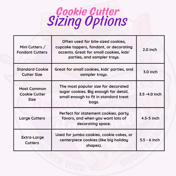 At Baking Treasures Bake Shop, our unique cookie cutters are 3D printed with food-grade PLA plastic filament. Each cutter is designed to be durable, comfortable to use, and made with love for your baking adventures.