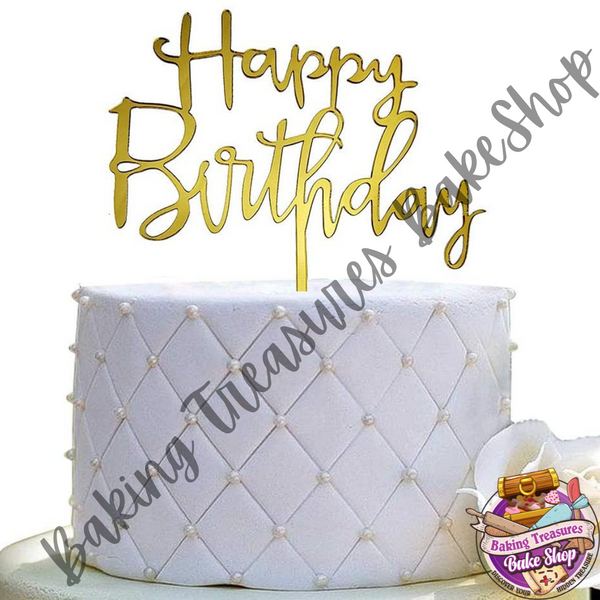 Happy Birthday Cake topper Gold
