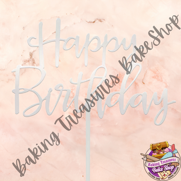 Happy Birthday Cake topper SILVER
