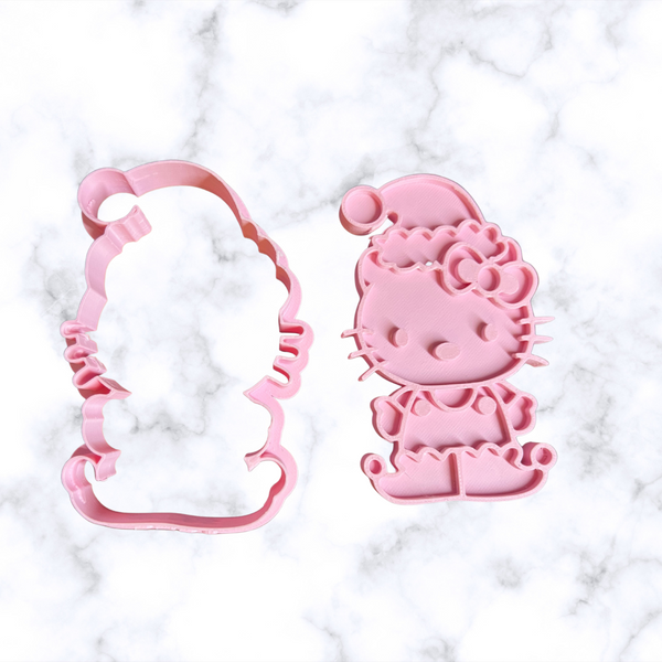 Cute Cat Christmas Cutter +Stamp 4 Inches each