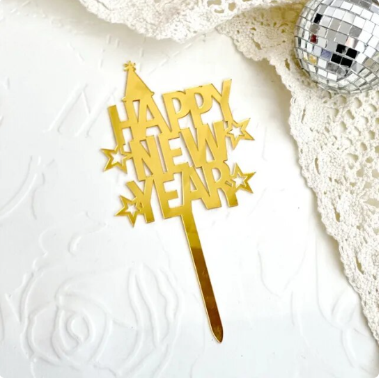 Happy New Year acrylic cake toppers gold