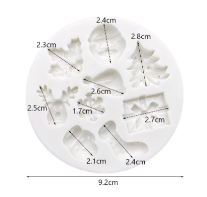 Create festive treats with this silicone sugarcraft mold featuring Christmas stocking, tree, Santa Claus, snowman, and reindeer designs. Perfect for baking, fondant decorating, and more. Add a touch of holiday cheer to your desserts with ease! Take your baking skills to the next level!