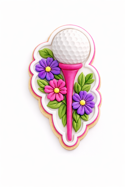 Create elegant, bakery-style cookies with this Floral Tee Time Golf Cookie Cutter & Stamp. This beautiful design features a classic golf ball resting on a tee, surrounded by bold florals for a feminine, classy touch—perfect for Mother’s Day, golf lovers, and “Golf Mom” themed treats.