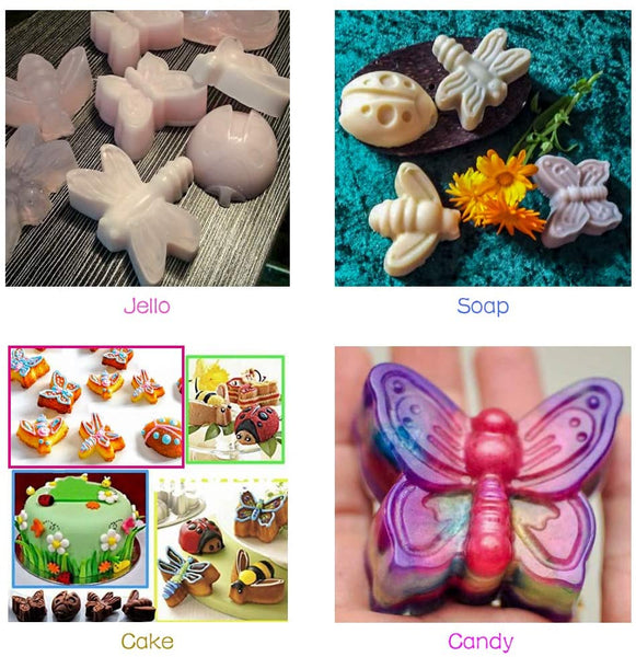 There are 4 different shapes of insect on each pan - butterfly, dragonfly, ladybug, and bee. The delicate patterns help to make your cakes more vivid and interesting.
