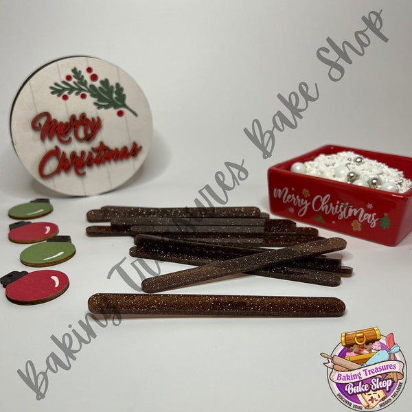 Brown and glitter acrylic sticks perfect for cake pops kick circles and other holiday treats