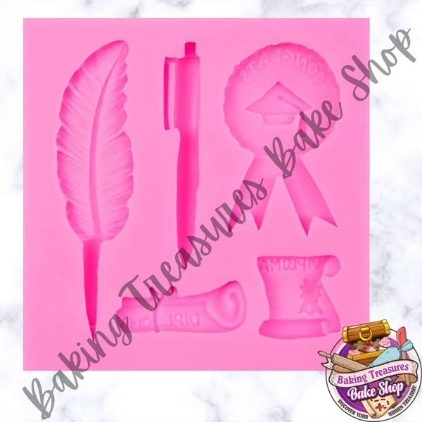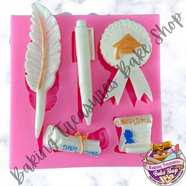 Graduation Medal And Diploma Silicone Mold is great for creating exciting and detailed edible decorations for your next cake, cupcakes, cookies, macarons, and more