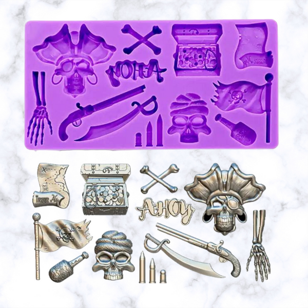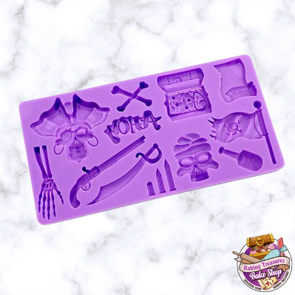 Ahoy, matey! Our Pirates Silicone Mold comes in colors that vary like the seven seas. Approximate sizing can be found in the images, so ye can easily top yer Chocolate-dipped Oreos or cupcakes. Not just limited to chocolate — the mold also works with fondant and gum paste.
