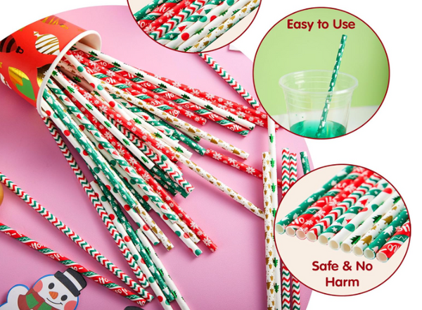 Food Materials: Christmas straws are made of multi-layer thick paper, not easy to break, and can be used with confidence. They are Thick and sturdy, can hold up nicely and will not fall apart in hot or cold liquid for an extended period of time