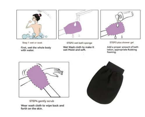 Liv's Exfoliating shower gloves painless remove dead skin scrub Body Korean Massage Mittoccan Hammam
