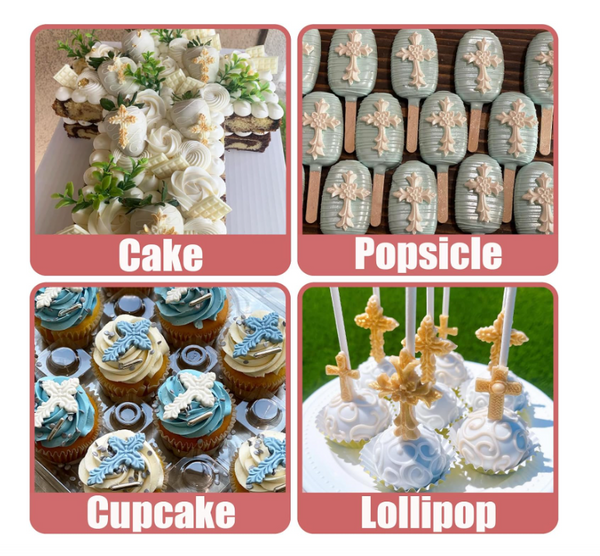 [APPLICATION]: Our Baptism Cake Decorations Cross Cake Mold are Suitable for Making Chocolate, Cake Decoration, Cupcake Topper, Cake Pop, and Popsicles. Can also Make Polymer Clay Resin Crafts. You Can Make a Christ Cross Themed Cake for Your Kid's Birthday Party.