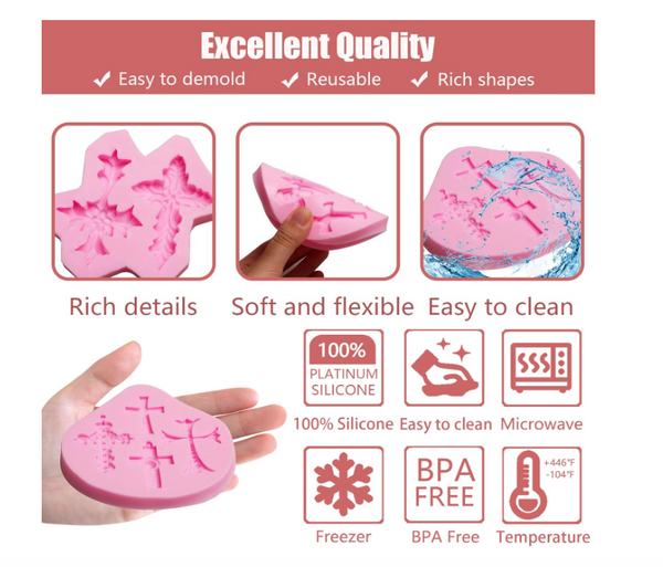 [PREMIUM MATERIALS]: Cross Fondant Mold are Made of Food-Grade Silicone, Durable. Can be Used in Environments From -104°F to +446°F. Reusable in Microwave, Oven, Freezer and Dishwasher.