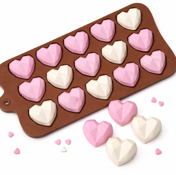 • Note: The decorated hearts shown in the photos are for inspiration purposes only. Finished chocolates or treats are not included with the purchase of this mold.
