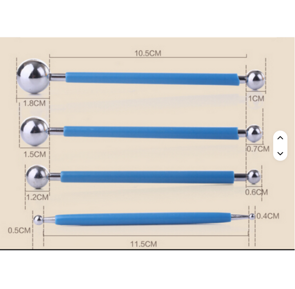 Unleash your creativity with this playful 4-pack of double-ended metal ball stylus tools! Each tool features carbon steel heads in various sizes, perfect for adding dots, pits, and delicate petal-like patterns to your clay masterpieces. Lightweight and durable with a rust-resistant chrome finish, these tools are easy to carry and ideal for beginners and hobbyists alike. Whether you're sculpting intricate details or just having fun, this set has you covered without the need for bulky equipment. Let your imagination run wild and bring your clay creations to life!