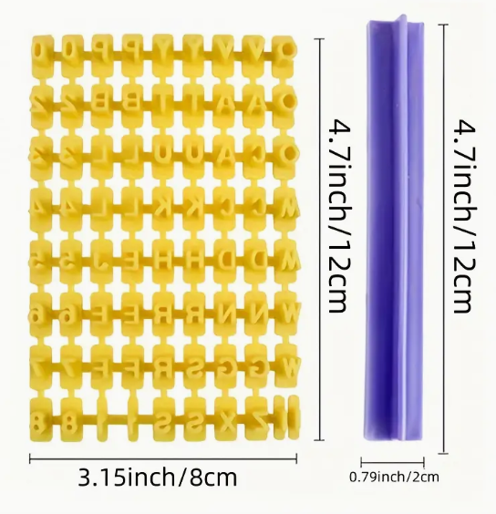 - Package includes 1 Pack Cookie Stamp. Each pack includes 55pcs letter, 18pcs number, 1 fixing tool.