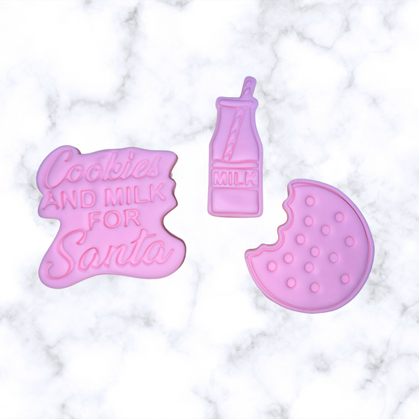 We're super proud of our customer experience - We want to keep connecting with y'all! All our cutters come with a 2PC set: there's a cutter and a stamp. Color may vary. These are 3D-printed plastic cutters for milk 'n cookies for Santa. Make sure you don't put 'em in the dishwasher - just hand wash with lukewarm H2O and a brush.