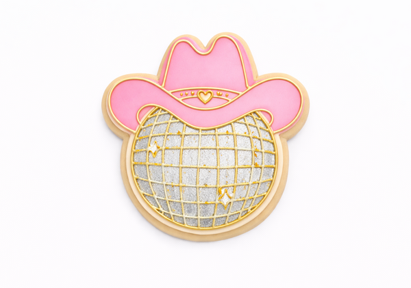 Get ready to cut some seriously groovy cookies! This disco ball cowboy hat cookie cutter and stamp combo brings the sparkle and sass to your baking adventures. Perfect for themed parties, western celebrations, or anyone who loves a little glitter with their grit, this two-in-one tool stamps detailed designs while cutting clean, precise shapes. Available in multiple sizes to match your creative vision, whether you're making bite-sized treats or show-stopping statement cookies. Let your inner cowboy shine bright like a disco ball!