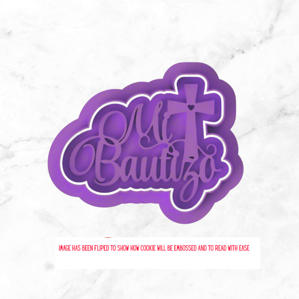 Mi Bautizo With Cross Cookie Cutter and Stamp with Size Option