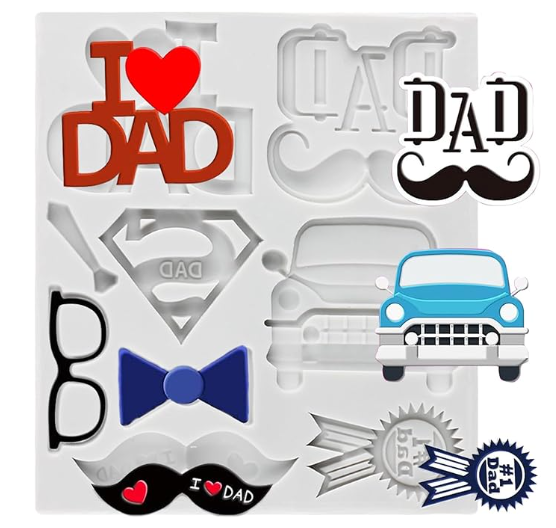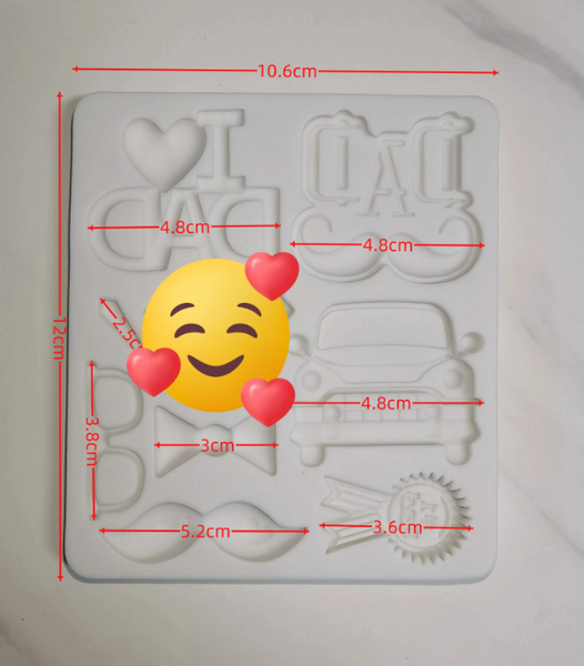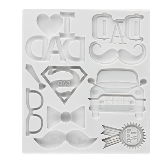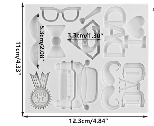"DAD W/ MUSTACHE" Measures 2in W X 1 3/4in L
