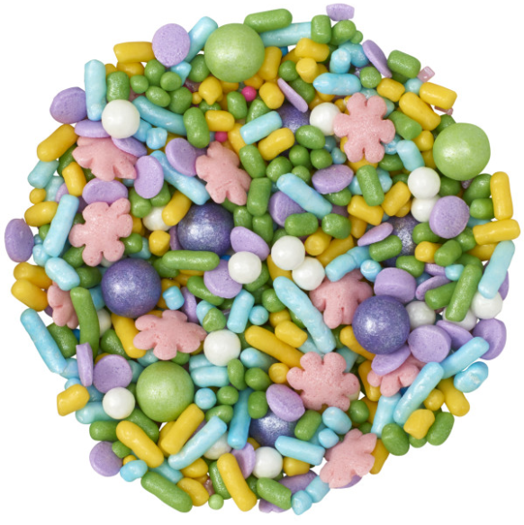 Add some color and texture to your treats with this premium sprinkle blend! Blends offer a fully edible variety of different shaped and sized sprinkles, quins, nonpareils, pearls, and sanding sugars. Conveniently pre-mixed and packaged in a 2 oz. handheld container. Due to the nature of the product, slight color variations may occur.