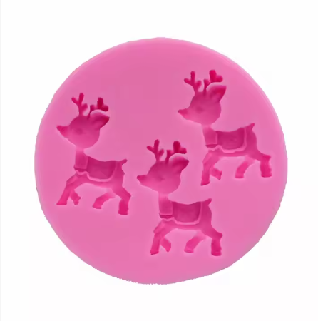 Rudolph Trio  Silicone mold is used to make Christmas deer fondant cakes, chocolates, and other baked goods. Dimensions: 6*6*1CM/2.36*2.36*0.39in