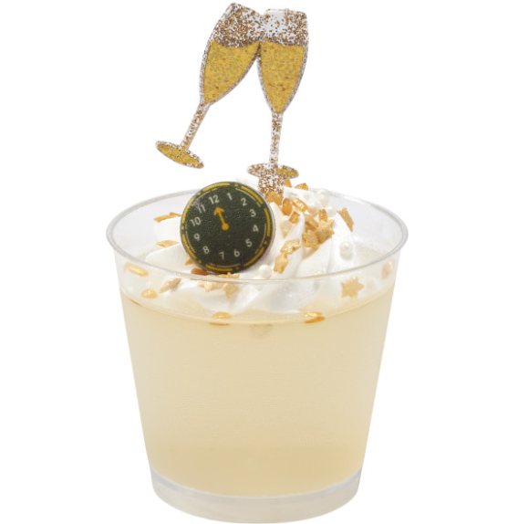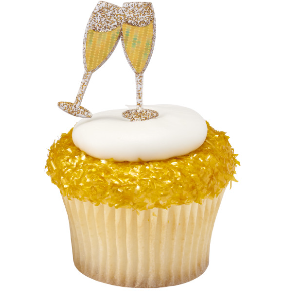Toast to the new year with these sparkling champagne glass DecoPics. Great for cake and cupcakes to add to an overall theme Made of food-safe plastic 12 picks per package
